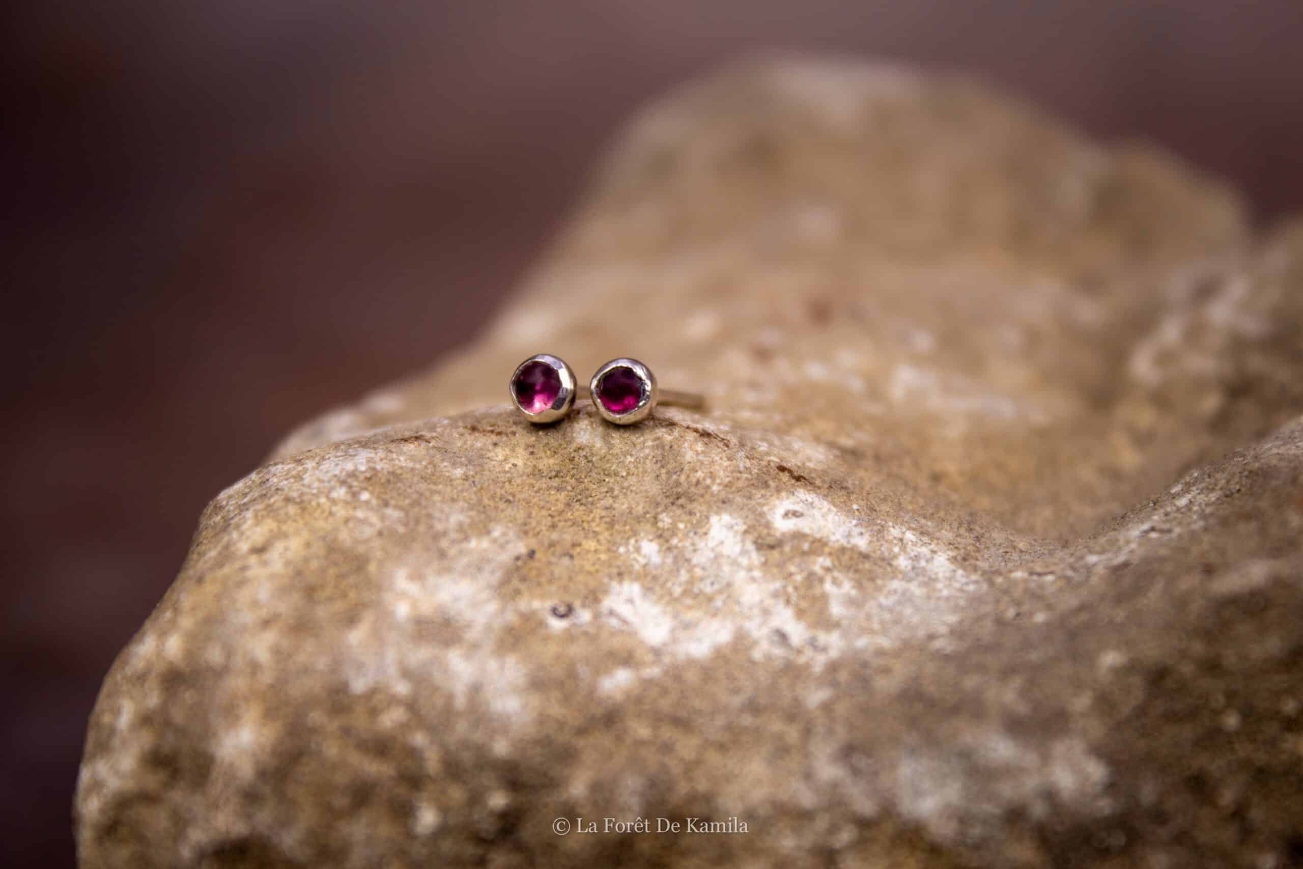 Paire de clous d’oreilles en argent massif 950, sertis de tourmalines roses taillées à la main. Un éclat doux et poétique.