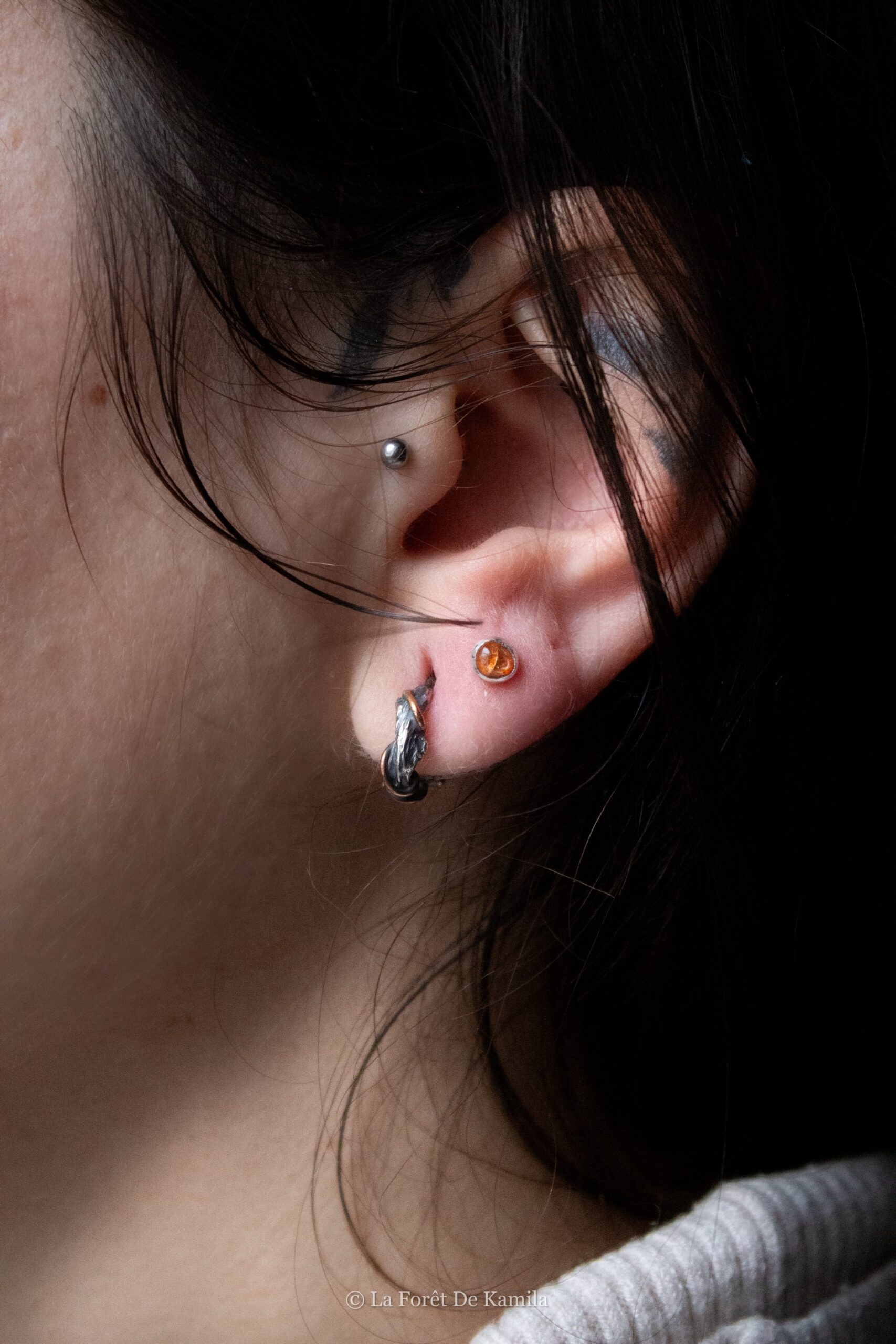 Savant mélange de 95% d’argent pur et 5% de cuivre, le métal de ce bijou est un bel alliage d’argent massif que l’on appel donc argent 950. Il est pour moi l’équilibre parfait entre la souplesse et la solidité pour être travaillé facilement et garanti un bijou solide et résistant. Chacun de mes bijoux est ensuite patiné afin de faire ressortir tout ses détails.